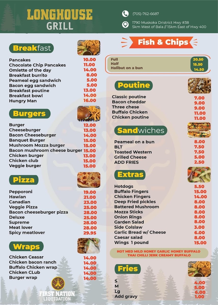 Welcome to Longhouse Grill, a delightful culinary haven nestled in Bala, Ontario. This charming spot is celebrated for its grill-style ambiance, offering a casual yet inviting dining experience. The menu showcases an enticing selection of chicken dishes, featuring mouthwatering options like Chicken Wings and the richly satisfying Chicken Caesar Wrap. Complement your meal with fries or deep-fried pickles to truly indulge.